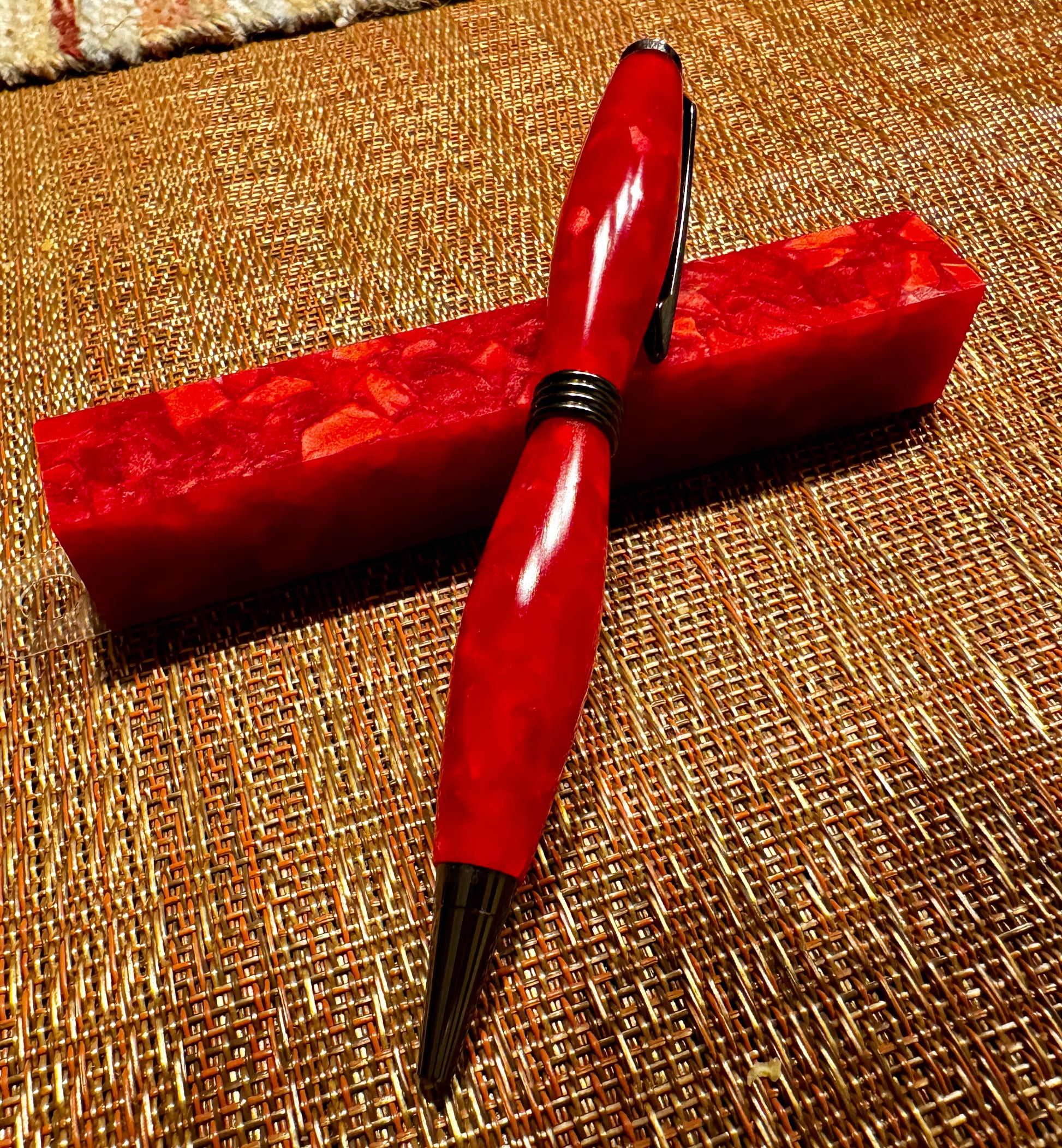 By special request I’m bringing her to the stage. Please welcome Red Ruby.  The bright red color makes it pop. The finish is superb. I apply 14 different finishing pads to get the look of perfection.  One of my favorite acrylic pens to make. Allow 3-4 days for shipping.