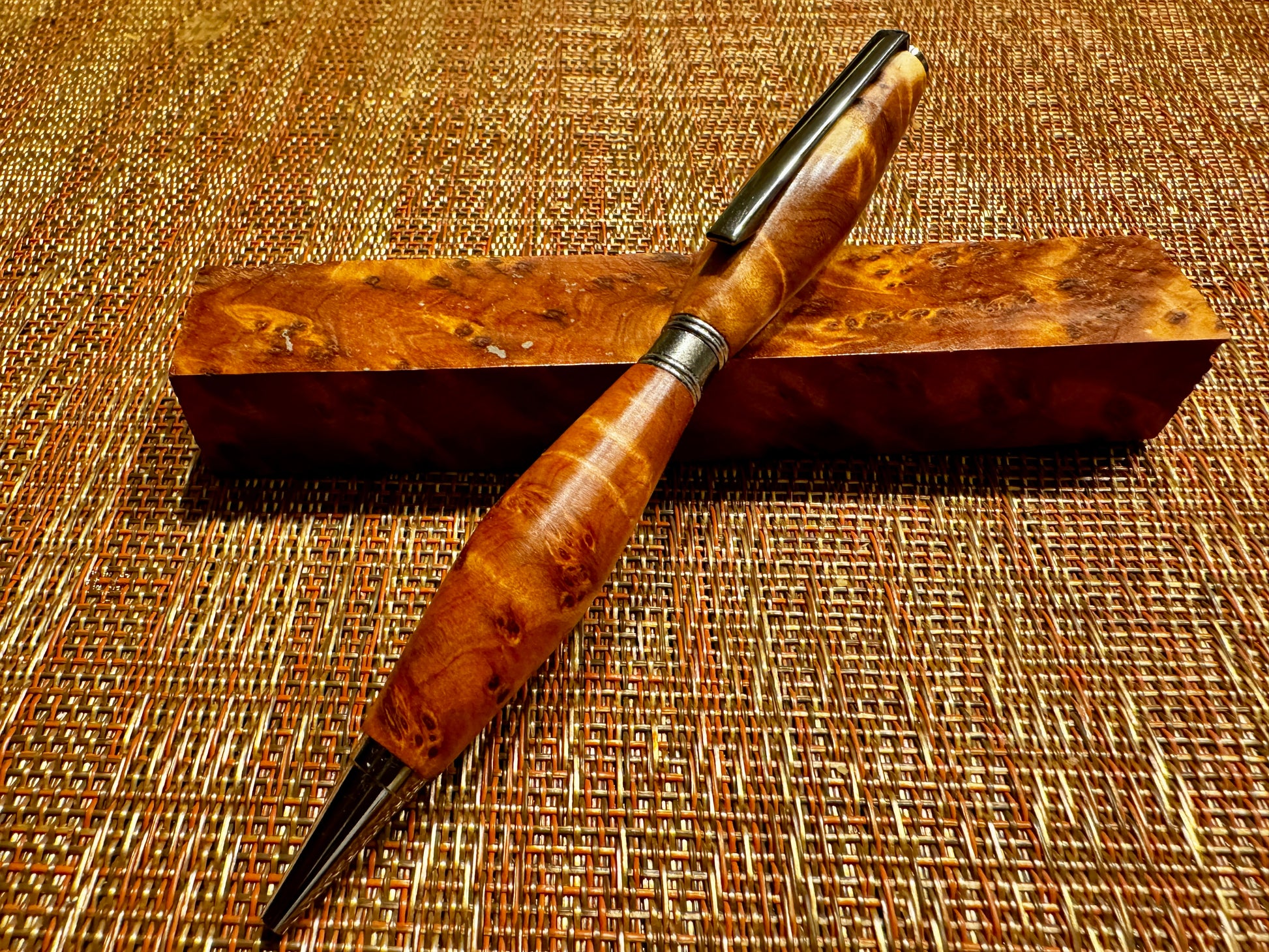 Very special wooden pen made from burl wood. The grain pattern makes each one unique and very stunning. They are a joy to create. Each one is made to order. Please allow 3-4 days to ship.