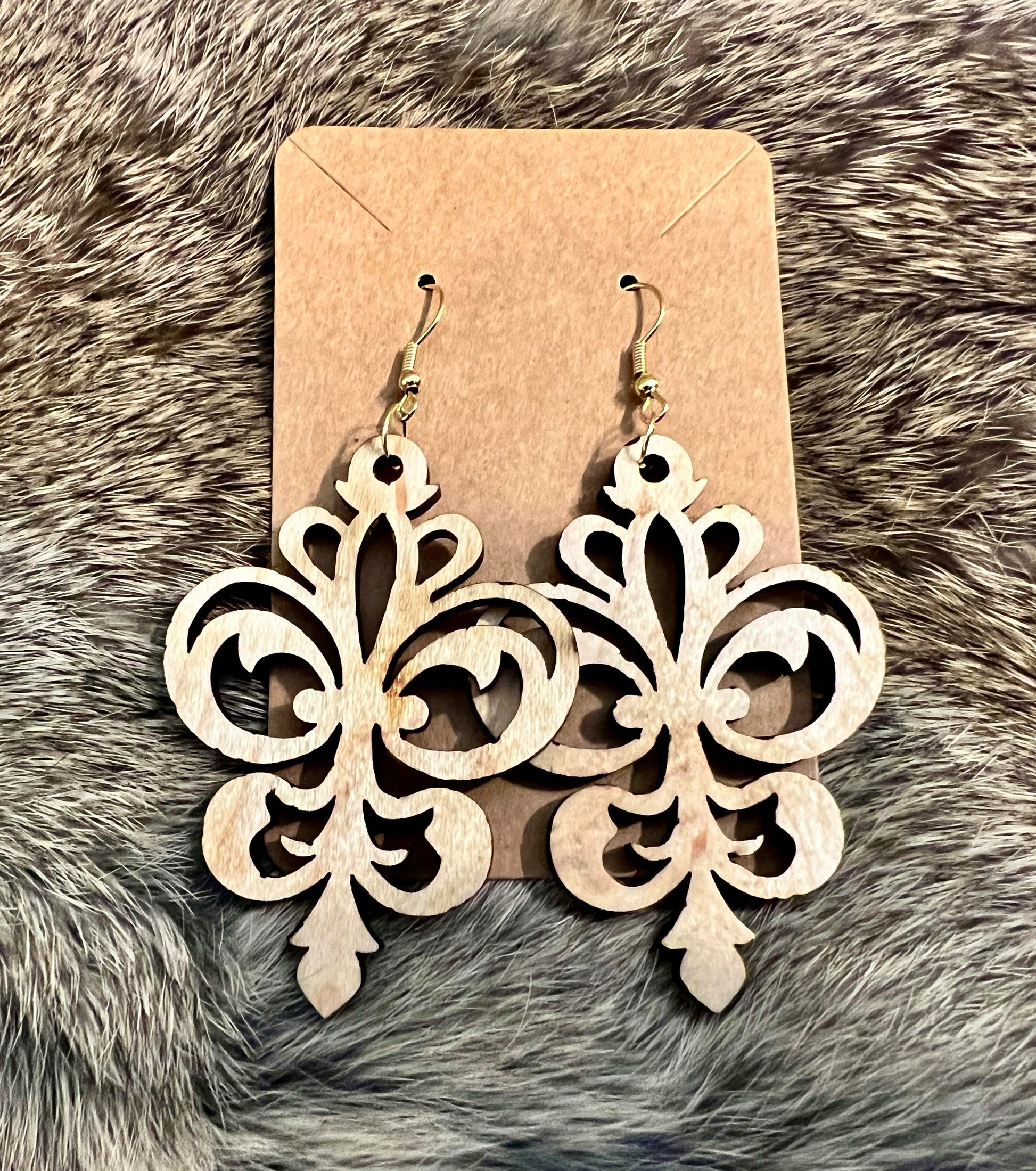 These are laser maple cherry wood earrings measuring just over 2 inches in size. Very light weight and 1/8" thick.